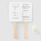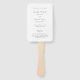 Ventilador de mão do programa tradicional de núpcias apresentando um design simples com seus nomes em um roteiro elegante e seus detalhes de evento em uma fonte serif clássica.