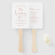 Rosa de ouro moderno e fãs de boas-vindas e programas de cerimônias apresentam um design de tipografia de na moda com roteiro de caligrafia e sotaque cardíaco. O texto personalizado simples e elegante que pode ser personalizado em ambos os lados com os nomes do casal, a data de casamento e as informações de ordem de cerimônia. Bonita e funcional para um dia quente de casamento de verão.