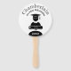 Este ventilador de mão divertido foi projetado para uma reunião de classe apresentando um formando trabalho de arte preto com rolagem rolada. O texto e o fundo estão a preto e branco. Preencha os campos de modelo de informações pessoais, remova qualquer texto ou clique em personalizar para selecionar uma cor, tamanho e estilo de tipo preferidos.