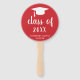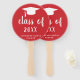 Ventiladores de mão de graduação minimalista com um design simples e clássico com um boné formando e uma "classe de ano" em uma escrita grossa juntamente com o nome do formando em branco sobre um fundo vermelho. A cor de fundo pode ser alterada para qualquer cor que você desejar. Um estilo tradicional com um talento moderno para um formando feminino.