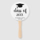 Ventiladores de mão de graduação minimalista apresentando um design simples e clássico com um boné formando e uma "classe de ano" em uma escrita grossa juntamente com o nome do formando em preto sobre um fundo branco. A cor de fundo pode ser alterada para qualquer cor que você desejar. Um estilo tradicional com um talento moderno para um formando feminino.
