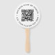 Um simples modelo de ventilador branco de código QR branco em forma redonda num estilo moderno minimalista que pode ser facilmente atualizado com o seu código QR, nome comercial ou site e texto personalizado, por exemplo. digitalize-me para... #QRcode #handfan #business