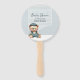 Considere este encantador conjunto de fãs chás de fraldas como parte de suas festividades. A frente e a parte traseira apresentam o evento especial junto com o nome da futura mãe. Cor azul suave, branca e bronzeada para um apelo relaxado e divertido. Parte da coleção Bear Jean Baby design. Use a modelo para personalizar.