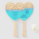Corações no leque de mão do programa da cerimônia de casamento na praia
