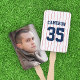 Mantenha-se legal e mostre seu apoio ao jogador de beisebol em um jogo, graduação ou qualquer evento com este fã de mão fotográfica apresentando um padrão de listras de camisa de beisebol na frente com cores que sejam totalmente personalizáveis (Para mudar a cor das listras, clique em personalizar, selecione a camada "ThinStripes1" e altere a cor de preenchimento. Para alterar a cor de fundo, selecione-a para alterar). No verso você pode adicionar sua foto. Personalize este ventilador substituindo o texto do marcador de posição e substitua a foto do marcador de amostra/marcador de posição pela sua própria foto. Para obter mais opções, como alterar a fonte e seu tamanho/cor, o espaçamento entre letras ou expandir ou contrair texto curvo, clique no botão "Personalizar". *Observe que a Marca d'água do Zazzle que aparece na visualização de zoom NÃO aparecerá no produto impresso final. © Rosewood e Citrus