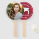 Sua foto favorita, as palavras Nosso Formando, seu nome na frente e boné de formatura e mais informações sobre o fundo vermelho da criança no verso. Esses fãs de mão são uma maneira divertida de se manter legal no dia da formatura. Correspondendo itens em nossa loja.