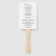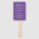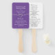 Leques de mão de programa de casamento roxo com caligrafia simples, moderna, minimalista e elegante, com coração de corda prateada.