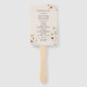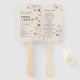 Leque de programa de casamento floral boho, frente e verso. A cor principal do cartão do programa é bege, com flores terracota e uma combinação de fonte boho.