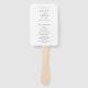 Ventilador de mão do programa de núpcias apresentando um design simples e mínimo com "e" em um roteiro elegante.