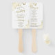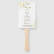 Esses lindos fãs de mão são projetados para servir como resfriamento para seus convidados, e um programa de casamento. O elegante design apresenta uma caligrafia dourada sobre um fundo branco clássico com fritas de renda de folha de alumínio falso de ouro ornamentado nos cantos. Há espaço para listar a ordem da cerimônia, bem como a festa de casamento e uma nota curta de agradecimento. Excelente recordação do seu dia especial.