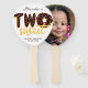 Por um segundo aniversário com o tema Dois Doce / rosquinhas / doces. As letras em DOIS estão cobertas de glacé de chocolate com aspersão colorida. O O é uma rosquinha coberta de chocolate. Sob isso, a palavra "doce" é escrita em um guião bege. Acima dessa imagem, em caracteres castanhos menores, está o texto [Name] é". Sob tudo, a ocasião e a data são bonés marrons. No verso, há uma foto marcante de uma garotinha com rabos, de Pixabay, grátis para uso comercial.