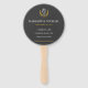 Set of 10 round wedding program fans featuring a charcoal front with a white horse head outline, gold laurel wreath, and crisp white customizable text. The back is white with a minimalist black horse head and gold wreath, plus a small gold accent bar near the handle for a refined, cohesive look. Perfect for brides-to-be, equestrian event planners, wedding planners, and elegant minimalist celebrations.