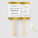 Um modelo de programa de graduação está em ambos os lados desses elegantes fãs de mão. Os ventiladores das mãos são dourados e brancos. O texto é preto. Você pode editar o texto conforme necessário.