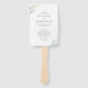 Ventilador de Mão do Programa de Casamento Botânico Elegante com um layout simples que apresenta um som verde de eucalipto em uma bela sombra de verde sábio no canto superior esquerdo e canto inferior direito. Uma escolha simples e moderna perfeita para um casamento de primavera ou verão.