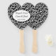 Este ventilador de remo é mostrado com um adorável impressão de damasco preto e branco com nomes de exemplo e data. Personalize este item e altere os nomes e a data para o seu.