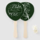 Personalize um favor de casamento único para os convidados com um conjunto de fãs de Mão de Favor de Casamento Verde Esmeralda. O design de fã de mão apresenta um folheto elegante que floresce com fundo colorido correspondente. Personalize com os nomes do noivo e da noiva junto com a data do casamento. Material adicional disponível com esta design também.