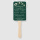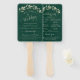 Esses programas de fãs de mão são rústicos, elegantes e bonitos. A design pintada à mão apresenta um sorvete de folhas verdes, ou pálidas, de cor de azeitona, e um fundo verde-esmeralda marmoreado. A tipografia apresenta uma caligrafia antiga em script, e há espaço para detalhes sobre a cerimônia, a festa noiva e um obrigado curto para você. Perfeito para um casamento ao ar livre.