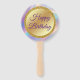 Leque feliz aniversário, na moda holográfico roxo dourad