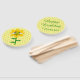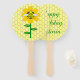 Este admirável fã de mão apresenta uma imagem gráfica de um belo abelhão amarelo com listras pretas, olhos, antenas e pernas. Tem asas bonito, azuis e brancas. A abelha está sentada no meio de um girassol amarelo-ouro. A flor tem um caule verde e três folhas. A mensagem "dia feliz das abelhas" aparece espalhada pelas três folhas. O fundo é composto por um padrão amarelo de mel. Há texto personalizado no verso para que você possa incluir sua própria mensagem.