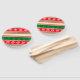 Design com decoração de símbolo de Natal em fundo listrado colorido