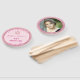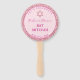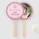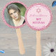 Empurrados com brilho rosado falso em ambos os lados, esses fãs de fotos divertidos fazem favoritos para festas bonitinhos do Bat Mitzvah. Fácil de personalizar, basta adicionar a foto da sua filha onde ela aparecerá com uma borda de brilho fino rosa impresso. Todo o texto do lado oposto pode ser personalizado, desde o texto em preto-colorido curvado no topo e no fundo até o script de tendência para o nome de sua filha e até o BAT MITZVAH em negrito pode ser alterado para BIRTHDAY para eventos futuros. Colocada sobre um fundo cor-de-rosa pálido, uma estrela cintilante falsa de David na parte superior desses ventiladores de mão personalizados redondos termina a design de um favor exclusivo e personalizado do partido Bat Mitzvah.