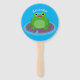 Este sapo verde giro e feliz sentado em uma almofada de lírio roxa é brilhante e adorável. Muita diversão anfíbia desenhada no estilo de animação feliz.