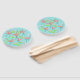 Os flamingos rosas e vivos batem suas asas e enrolam suas penas contra um fundo azul-d'água com verduras e lírios d'água. Um design de na moda com um toque retrorreflector que pode ser personalizado com seu próprio texto, imagens e ideias. Uma imagem de arte digital original criada por Quirky Chic.