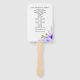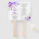 Flores de aquarela púrpura, fã de mão do programa de casamento de fotos florais. Um bonito design de casamento que inclui flores aquáticas em tons de roxo acentuados com azul e folhas. Os nomes estão na tipografia de scripts.