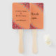 A pintura bonito de flores de prata estreladas em caules marrons, em uma mistura de fundo laranja e vermelho, é impressa em ventiladores de mão personalizados. O design de flores cobrir os cantos inferior esquerdo e superior direito. A maior área laranja fica no centro, que se mistura nos cantos vermelhos sob as flores das estrelas nos dois cantos citados. A frente do ventilador tem um espaço reservado para modelo para os nomes do noivo e da noiva. A parte de trás do fã diz, Obrigado. São uma escolha excelente para casamentos. Obrigado por comprar em CherylsArt no Zazzle.