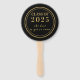 Suportem seu formando para a graduação de 2023 com este moderno e chic Classe de mão de graduação de 2023. Este design apresenta um fundo preto com dois quadros circulares dourados. Na dentro do texto lê-se "CLASSE DE 2023" e uma frase inspiradora que diz "o melhor ainda está por vir". No outro lado do ventilador da mão, você pode inserir uma foto do seu formando e personalizar a borda com o nome de sua escolha.