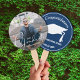 Sua foto favorita, as palavras Nosso Formando, seu nome na frente e boné de formatura e mais informações sobre o fundo azul no verso. Esses fãs de mão são uma maneira divertida de se manter legal no dia da formatura. Correspondendo itens em nossa loja.