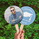 Sua foto favorita, as palavras Nosso Formando, seu nome na frente e boné de formatura e mais informações sobre o fundo azul em pó no verso. Esses fãs de mão são uma maneira divertida de se manter legal no dia da formatura. Correspondendo itens em nossa loja.