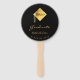 Na frente: Um fundo preto chic. Decorado com um boné de ouro moderno e abstrato, chapéu, tassel com dentro de ano. O texto: Formando e o nome são escritos com um script de estilo moderno, escrito à mão. Para ele e para ela. Voltar: adicione sua própria foto do formando.