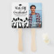 Celebre o seu formando, fique legal e salve a sua cerimônia de formatura ao mesmo tempo! O lado frontal deste fã incrível apresenta uma silhueta de bonés de formatura jogados no ar, seu nome de formando, classe de ano e escola. A parte de trás apresenta sua foto e seu nome. Use para salvar uma fila de assentos para o grande dia - ou perfeito para se vangloriar em um dia quente de formatura. Montagem necessária ou escolha já montada.