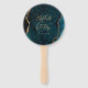 Este elegante fã de casamento moderno apresenta uma cor azul-lacrimogênea agate geode design aparada com falso brilho dourado. De um lado, personalize o texto dourado, com os nomes da noiva e do noivo em caligrafia manuscrita sobre um grande e a data do casamento abaixo. Adicione facilmente sua foto favorita ao outro lado. Faz uma bela manutenção para seus convidados de casamento!