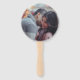 Ventilador de mão tradicional e clássico apresentando um simples design com seu monograma inicial em uma elegante caligrafia roxa real. O fundo tem sua foto favorita. Este design clássico é perfeito para um casamento formal. Se você vai ter um casamento ao ar livre, esses fãs de mão são uma excelente para oferecer aos seus hóspedes para ajudá-los a se manter legal e também fazer uma lembrança de excelente.