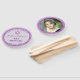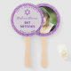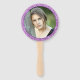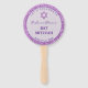 Empurrados com brilho púrpura sujo em ambos os lados, esses fãs de fotos divertidos fazem favoritos para festas bonitinhos de Bat Mitzvah. Fácil de personalizar, apenas adicione a foto da sua filha onde ela aparecerá com uma borda de brilho fino roxo impresso. Todo o texto do lado oposto pode ser personalizado, desde o texto roxo escuro curvado no topo e no fundo até o script de tendência para o nome de sua filha e até o BAT MITZVAH em negrito pode ser alterado para BIRTHDAY para eventos futuros. Colocada sobre um fundo púrpura de lavanda pastel pálido, uma estrela brilhante de David na porção superior desses ventiladores de mão personalizados redondos termina o design para um favor exclusivo e personalizado do partido Bat Mitzvah.