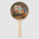 These hand fans have a pretty gem encrusted snail pictured on it.