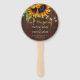 Elegante rústico país favorito ao casamento obrigado seu fã redondo modelo com belos buquês girassóis de ouro amarelo brilhante e laranja, cordas de luzes cintilantes e um roteiro de caligrafia em ouro quente sobre um fundo de madeira marrom-escura. ++++++++++++ + Fácil de personalizar com seus detalhes!++++++++ Adequado para o país rústico quic | fazenda | berçário de Verão | outono outono casamentos ao ar livre.