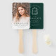 Este elegante fã de mão de graduação mostra uma foto do formando com uma cobertura de texto verde escuro. A palavra "formando" aparece na tipografia decorativa de contornos. Adicione o nome do formando, a escola e o ano de aula abaixo. O verso apresenta a palavra "parabéns" sobre uma crista vintage elegante que rodeia um monograma branco num fundo verde, com o nome, a escola e o ano de aula abaixo.
