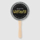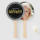 ventilador de mão de graduação na moda redonda com uma falsa borda reluzente prateada e a palavra "Formando" na folha de ouro falsa da moda na frente. No verso você pode adicionar a foto do formando. Personalize-o substituindo o texto do marcador de posição e substitua a foto do marcador de amostra/marcador de posição por sua própria foto. Para obter mais opções, como alterar a fonte e seu tamanho/cor ou o espaçamento entre letras, clique no botão "Personalizar". *Observe que a Marca d'água Zazzle que aparece na visualização de zoom NÃO aparecerá no produto impresso final © Rosewood e Citrus