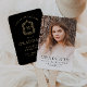 Este elegante ventilador de mão de graduação apresenta uma foto do formando com uma camada de texto preto. A palavra "formando" aparece na tipografia decorativa de contornos. Adicione o nome do formando, a escola e o ano de aula abaixo. O verso apresenta a palavra "parabéns" sobre uma crista vintage elegante que rodeia um monograma de ouro num fundo negro, com o nome, a escola e o ano de aula abaixo.