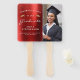 Ajude seus convidados de graduação a se manterem legal durante a cerimônia ou festa com esses fãs de mão personalizados de graduação em fotos, com as palavras "Parabéns para nosso Formando" em texto branco sobre fundo vermelho esfregado de metal. A palavra "Formando" aparece em um script gracioso no estilo de escrita manual. Um par de bonés de conselho de argamassas de brilho dourado e uma dispersão de ouro confete decoram a parte superior da etiqueta. Personalize um lado com seu nome de formando, escola e ano de graduação. Substitua facilmente a imagem do exemplo do outro lado por uma foto do seu formando.