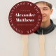 Felicite e comemore seu formando masculino e fique legal ao mesmo tempo. Além disso, use este ventilador de formando personalizado para salvar sua cadeirinha de formatura! O design da frente tem o nome do formando em uma corajosa fonte moderna, classe de ano, nome da escola e o ditado "parabéns ao formando" em tipografia moderna, em um fundo de sua escolha de cor (mostrado em burgundy, mas que pode ser mudado para sua cor de escola usando o menu personalizar). Você também pode mudar a cor do texto para corresponder às cores da escola. A parte traseira do ventilador apresenta a foto do seu formando. Fã moderna e elegante da cerimônia de formatura que também é uma fantástica manutenção do grande dia do seu formando.