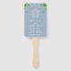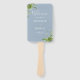 Este elegante fã de mão do programa de casamento floral verde moderno pode ser personalizado com suas informações em tipografia química em um fundo azul empoeirado. Projetado por Thisnotme©