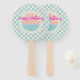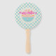 Cute blue gingham plaid checkered birthday Hand Fan. Custom party supply.