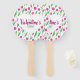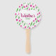 Happy Valentine's day hand fan decorated with pink tulip pattern on white background.