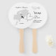 Ventiladores de casamento de destino na moda para casais que se casam em Ibiza, recursos, mapa de símbolos de lagarta da lagartixa, conchas e corações. Um design muito bonito, fácil de personalizar com seus detalhes