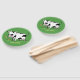 Nossa linda vaca leiteira negra e branca fresiana está num campo de grama verde comendo margaridas amarelas. Muito diversão bovina!