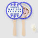Tragam estes fãs de mão marinho azul e branco divertidos para a cerimônia de graduação para que possam apresentar os vossos parabéns ao formando enquanto eles orgulhosamente recebem o diploma. Cada ventilador de mão de graduação apresenta um lado com uma borda azul escura azul escura suja, um trio de designs de boné e de fita correspondentes de cima e de baixo com CONGRATS e VOCÊ FEZ ISSO! e seu nome de formando no meio em uma fonte azul de marinho maior no fundo branco. Esses ventiladores de mão redonda personalizados invertem para uma borda azul escura e cintilante coincidente e sua foto de formando no centro. Adicione um pouco de diversão à comemoração da graduação com esses divertidos fãs personalizados de marinho azul e branco.